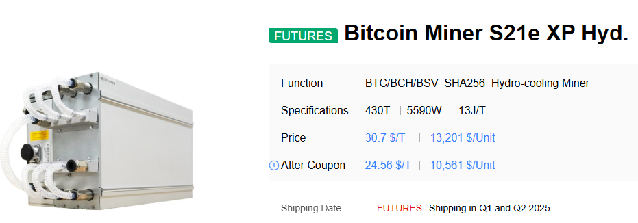 BITMAIN – bitmain.com/Bitcoin Miner S21e XP Hyd